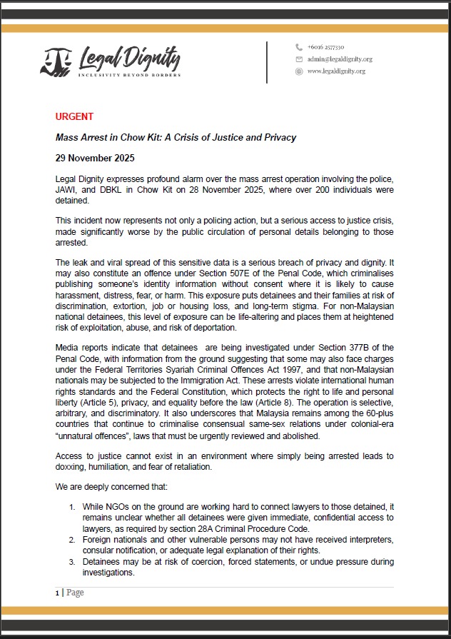 Public Statements | Kenyataan Awam: Mass Arrest in Chow Kit: A Crisis of Justice and Privacy | Tangkapan Besar-Besaran di Chow Kit: Krisis Akses kepada Keadilan dan Privasi